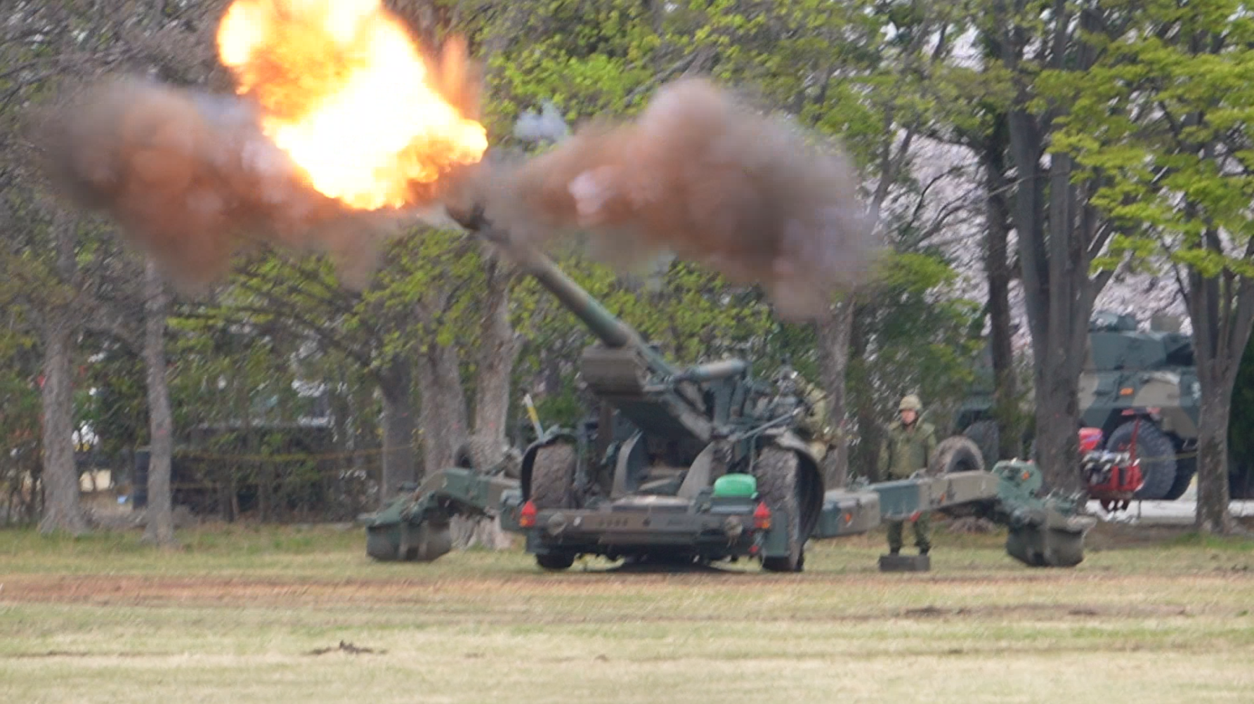 で、今回は演習も観てきたんですよ。すごい迫力でしたね。動画で撮ってたので写真より粗いんですが、発射(空砲)のシーンも撮ってたので。